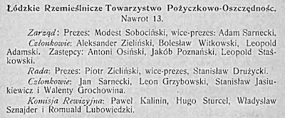 Natomiast z czysto genealogicznych wieści, dzięki stronie genealogyindexer.org odkryłem, że moi prapradziadkowie Adam Sarnecki i Leopold Adamski, w publikacjach informacyjnych z lat 1909-1920, pojawiają się jako członkowie Łódzkiego Rzemieślniczego Towarzystwa Pożyczkowo-Oszczędnościowego. Kompletna nowość! :D